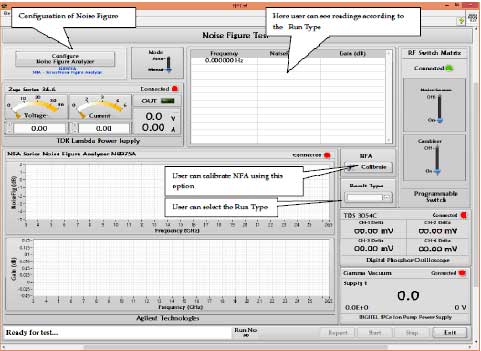 Based on the selected Result Type like Noise Figure, P -Hot, T-Cold etc.. S/w automatically updates Frequency, Result Type and gain Values and also plots Frequency Vs result Type and Frequency Vs gain graphs