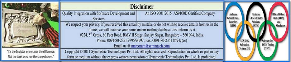 What started as an offshoot of erstwhile Digital Equipment Corporation, 25 years ago, Symmetric is proud to be in your hands through this news letter to brief and periodically update on LOBs , Turnkey proposition , tailored and proven solution in perfect consonance with the legacy carried forward in Aerospace, Military, Process control and Data Acquisition and Real Time Embedded applications.